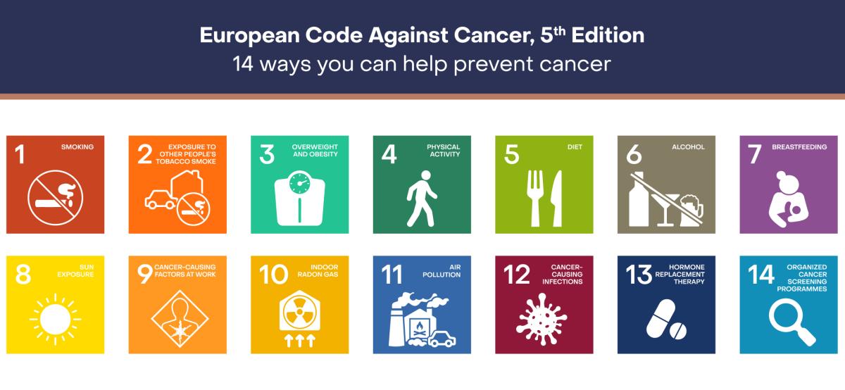 Der Europäische Kodex zur Krebsbekämpfung ist eine Initiative der Europäischen Kommission, die von der Internationalen Agentur für Krebsforschung der Weltgesundheitsorganisation entwickelt wurde. Er soll die Menschen darüber informieren, was sie für sich oder ihre Familie tun können, um ihr Krebsrisiko zu senken.